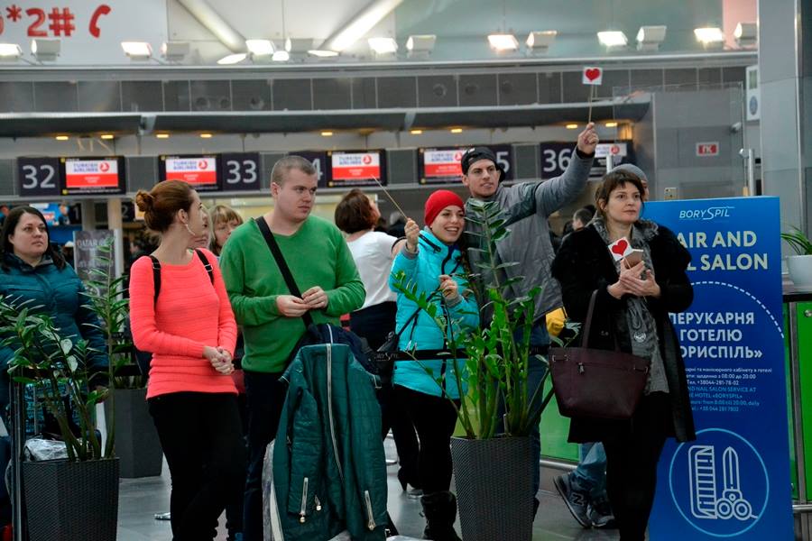 В середу, 14 лютого на пасажирів аеропорту «Бориспіль» чекав романтичний сюрприз.