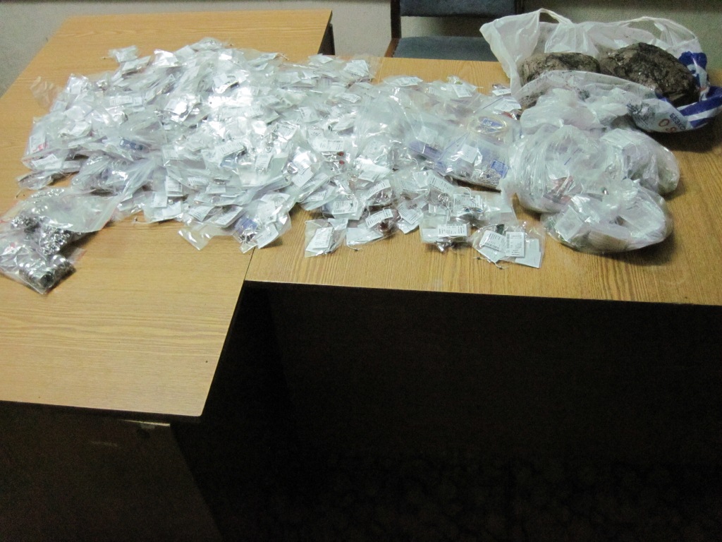 У ході реалізації інформації, отриманої від співробітників оперативно-розшукових підрозділів Держприкордонслужби, спільна міжвідомча група під час огляду робочого тамбура одного з пасажирських вагонів, у ящику для вугілля виявила 7 пакунків з ювелірними виробами, виготовлених з металу сріблясто-білого кольору, зовні схожого на срібло.