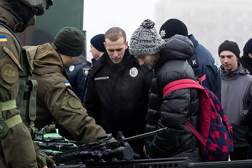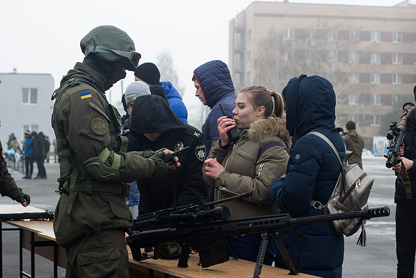 Майбутні абітурієнти мали змогу приміряти військове обмундирування Національної гвардії та потримати в руках новітні зразки озброєння українського виробництва.