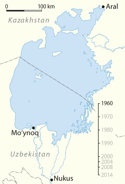 Он напомнил, что Аральское море — бывшее бессточное соленое озеро, расположенное на границе Казахстана и Узбекистана.