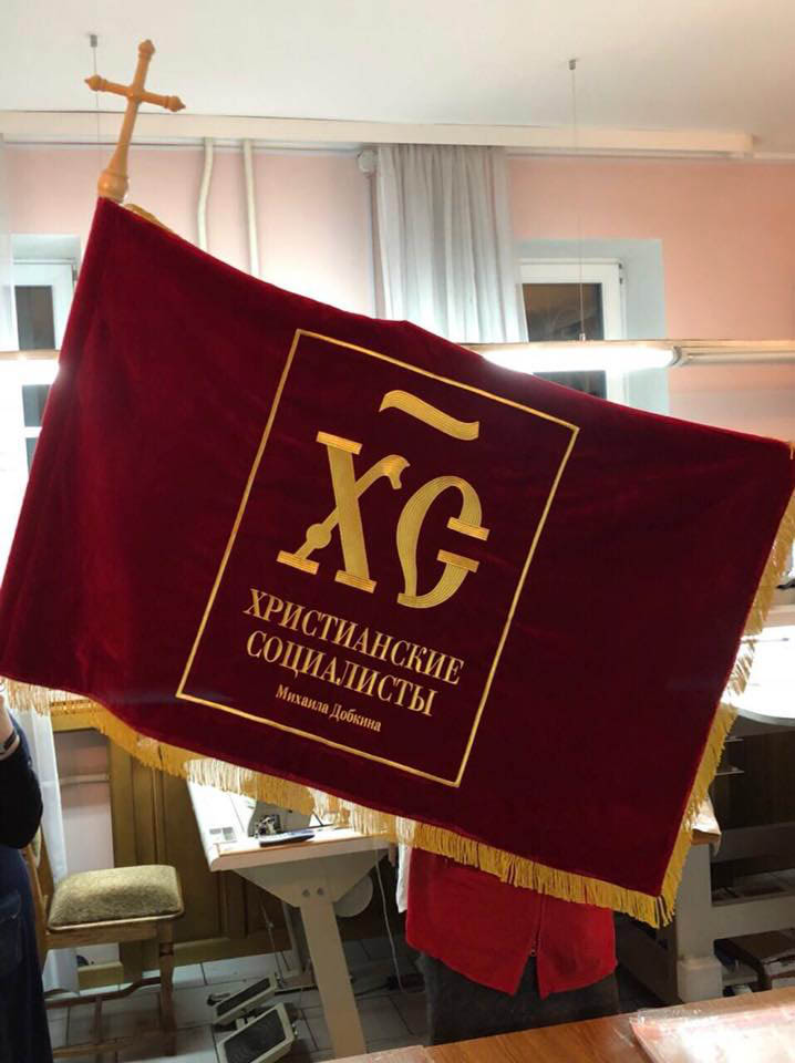 В Facebook Добкин опубликовал фотографию с флагом партии, прикреплённым к древку с крестом.