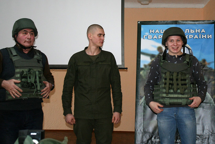 Студенти зацікавлено слухали і переглядали відео про Нацгвардію, отримали буклети та брошури, в яких детально описані умови та правила вступу до резервного підрозділу і служби за контрактом у лавах НГУ. Кожен охочий студент та викладач змогли приміряти амуніцію військових.