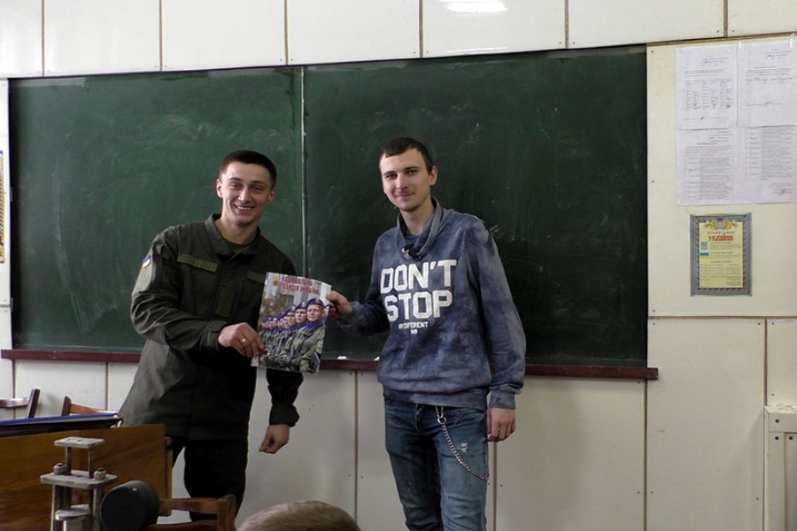 Військовослужбовці бесідою не обмежились і студенти отримали інформаційні буклети, з яких вони матимуть змогу дізнатися більше про переваги служби у лавах Національної гвардії України.