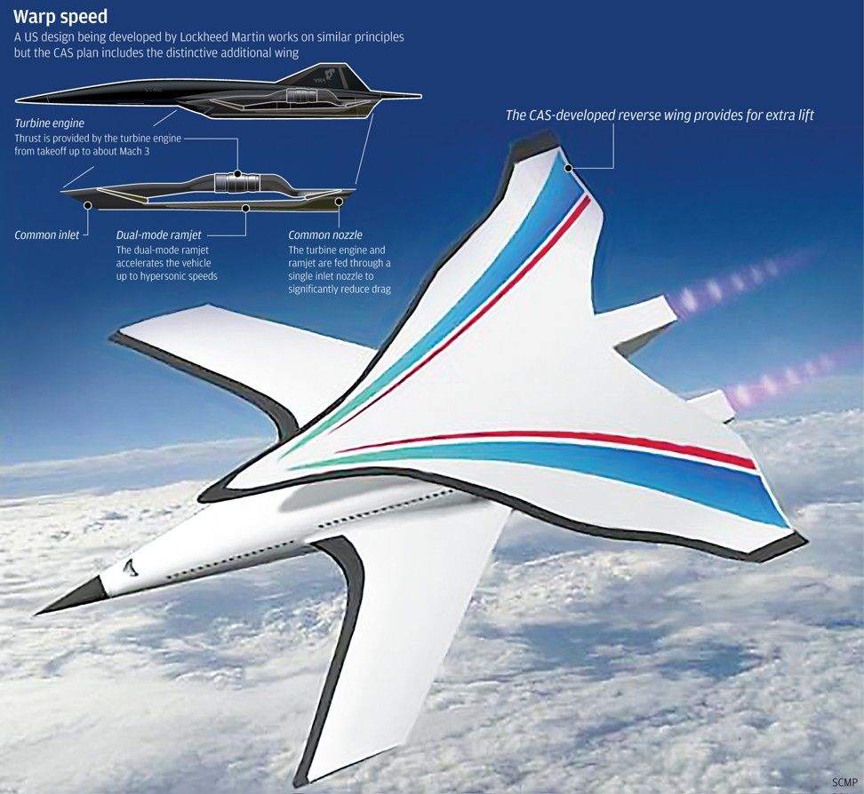 Инженеры из Китайской академии наук представили концепт гиперзвукового пассажирского самолета, который сможет преодолеть расстояние между Пекином и Нью-Йорком всего за 2 часа. Как и многие другие китайские проекты, концепт нового самолета — побочный продукт военной программы, в данном случае по созданию гиперзвуковых крылатых ракет, пишет Хайтек со ссылкой на South China Morning Post.