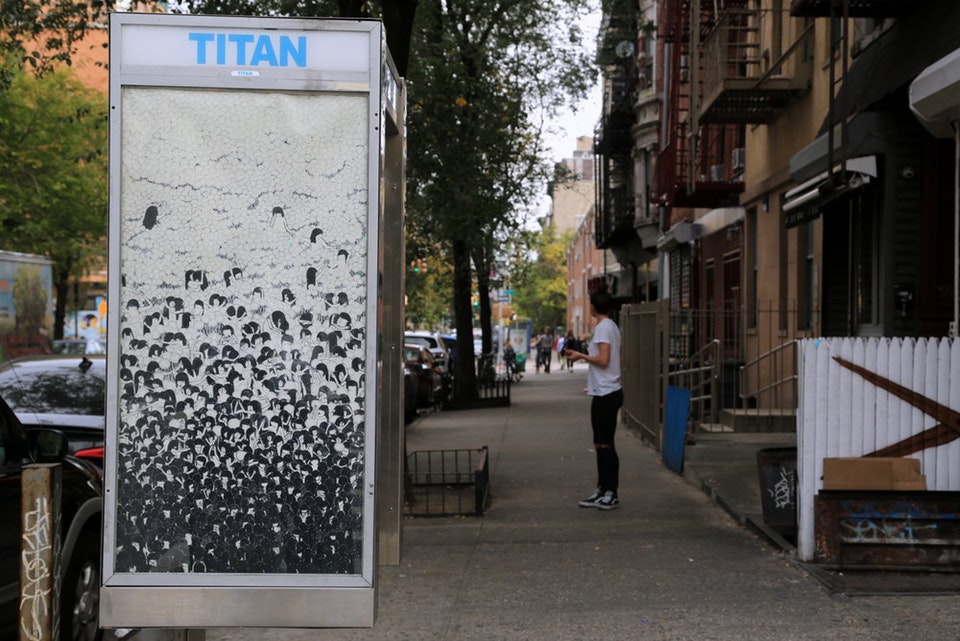 В прошлом году художница Кэролайн Колдуэлл и писатель RJ Rushmore запустили проект Art in Places, для которого пригласили 55 художников и попросили их создать плакаты на свободную тему. Получившиеся работы затем разместили на нью-йоркских телефонных будках, пишет Colossal. Теперь, в феврале 2018-го, авторы акции выпустили книгу по мотивам проекта.