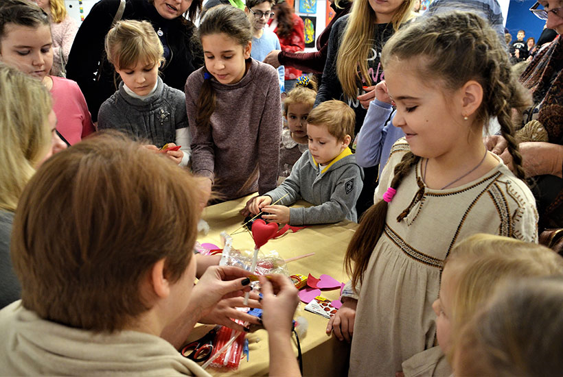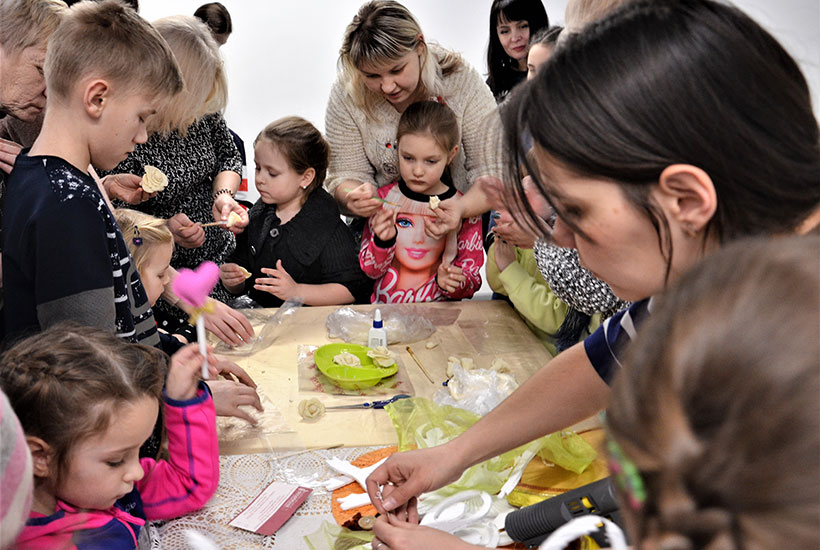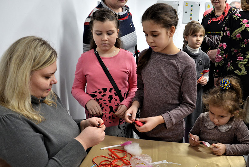 Цими вихідними дітлахи гвардійців військової частини 3017 Східного ОТО НГУ побували у філармонії. В фойє маленькі слухачі з задоволенням долучилися до майстер-класів «Hand made». За допомогою викладачів діти швидко опанували ліпнину з тіста, виготовлення мотанок та сердечок, плетіння косичок.