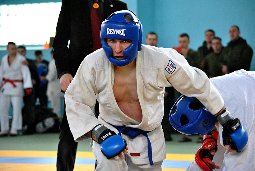 Азарт, піт, емоції, кров і жага до перемоги – всі атрибути чоловічого спорту були у цьому залі, де зібралися спортсмени з Харкова, Слов’янська, Маріуполя, Сум, де розташовані військові частини Східного ОТО, а також з Охтирської частини Нацгвардії.