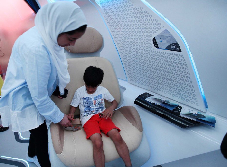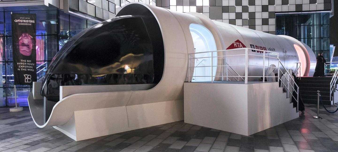 Макет пассажирской капсулы Hyperloop был продемонстрирован в Дубае в партнерстве с Dubai Roads and Transport Authority (Дорожно-транспортное ведомство Дубая) в City Walk Dubai в рамках Месяца инноваций в ОАЭ.