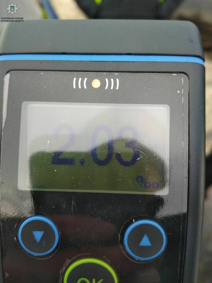 Під час оформлення події, поліцейські виявили у водія авто Volkswagen ознаки алкогольного сп'яніння. Згідно чинного законодавства патрульні запропонували громадянину на місці пройти огляд на стан сп'яніння за допомогою газоаналізатора "Drager". Результат огляду склав 2,03 проміле, що більше ніж в 10 разів перевищує допустиму норму (0,02 проміле). Поліцейські склали на керманича Volkswagen відповідні адмінматеріали за керування транспортним засобом з ознаками сп'яніння та порушення правил дорожнього руху, що призвело до дорожньо-транспортної пригоди. В подальшому відповідальність водія встановлюватимe суд.