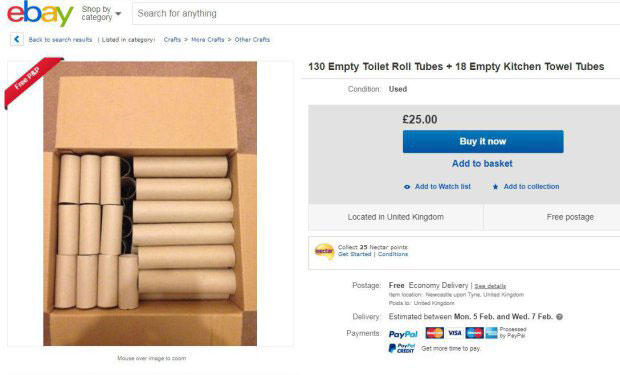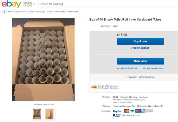 Один из крупнейших интернет-аукционов в мире eBay заполонили оптовые предложения втулок от туалетной бумаги. На это обратило внимание издание Metro.