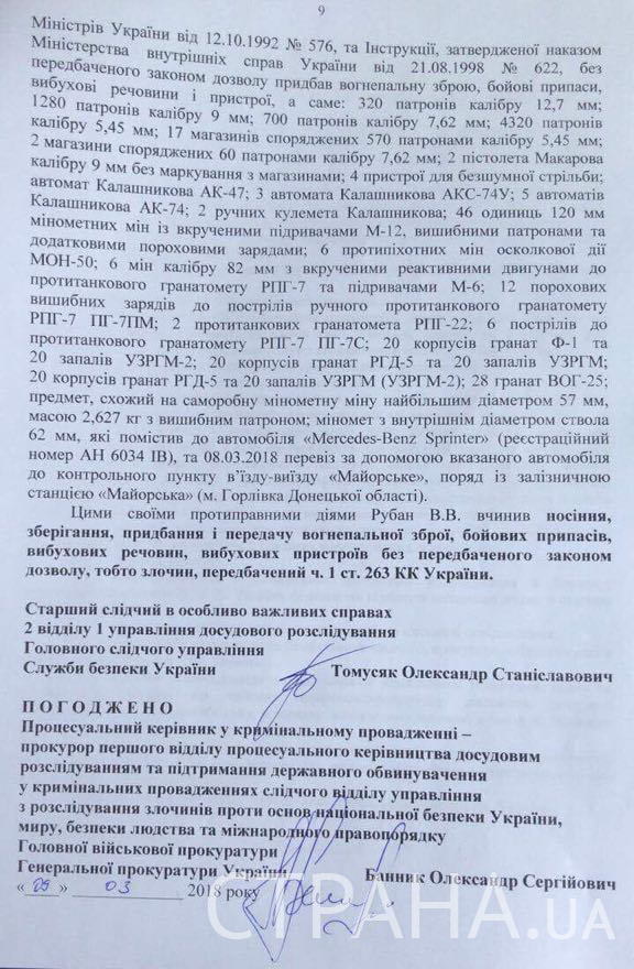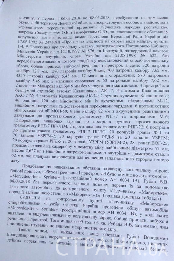 В распоряжении "Страны" оказался текст подозрения Рубану.
