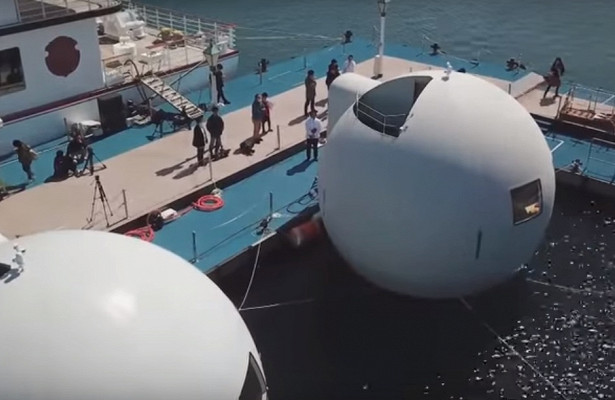 Плавающая капсула вмещает до трех человек. Первый этаж спроектирован как жилая каюта, а на втором расположился смотровой купол.