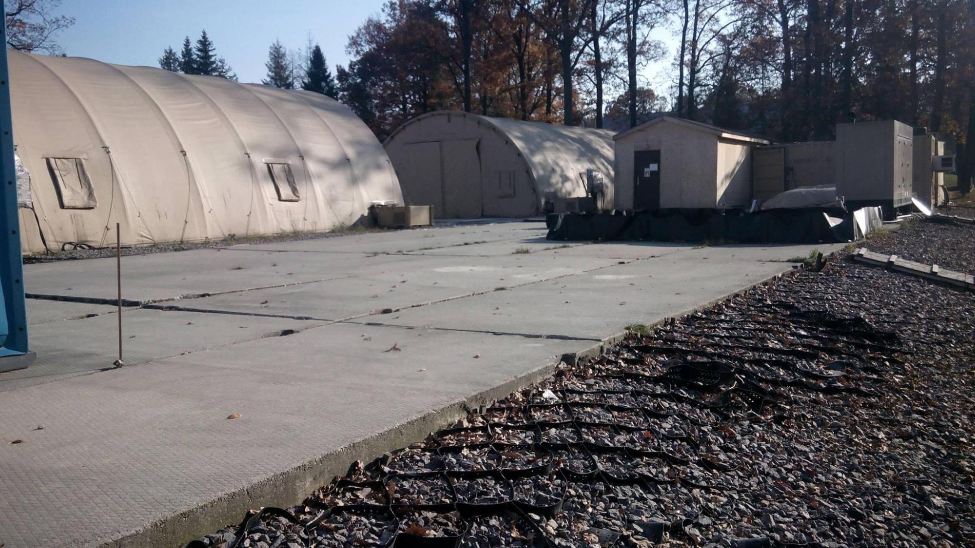 Фото 3,4,5 - натовский лагерь в Яворове, палатки, крупный план щебня вокруг лагеря в пластиковых формах, чтобы камни не разносили в стороны, дренаж.