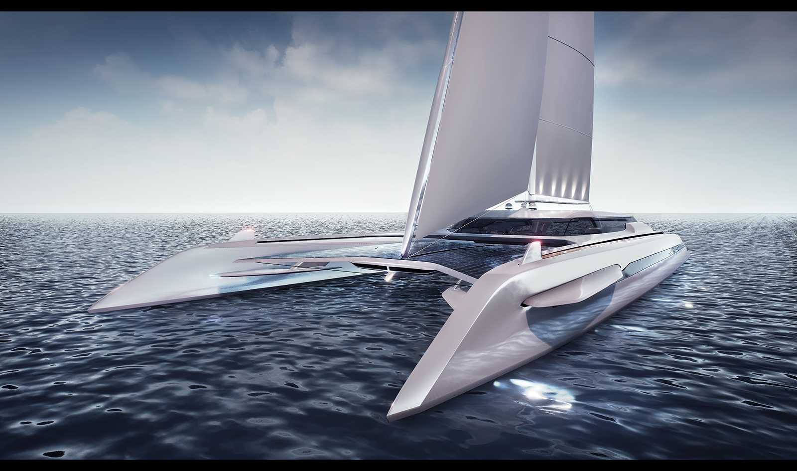Уникальные дизайнерские решения, предложенные создателем концепта, позволяют в полной мере использовать полезную площадь поверхности катамарана для размещения огромного числа солнечных панелей.