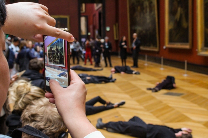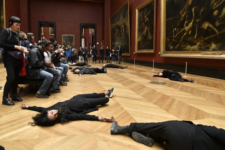 На днях активисты движения Libérons le Louvre устроили в Лувре акцию, направленную против руководства музея: на глазах у посетителей они внезапно рухнули на пол под картиной Теодора Жерико «Плот „Медузы“», где изображены пассажиры и члены экипажа потерпевшего крушение судна. Словно погибшие, активисты расположились на полу так же, как герои полотна, тем самым «расширив» происходящее на картине за ее пределы, пишет Hyperallergic.