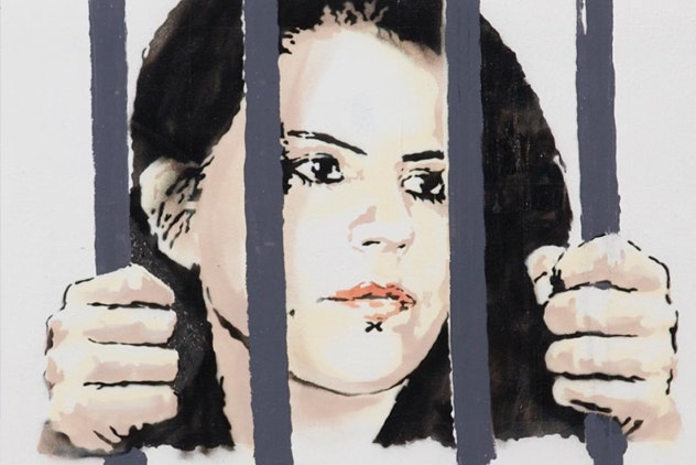 Рисунок Бэнкси появился на бетонной стене в самом центре Нью-Йорка — художница изображена за решеткой, а надпись под работой гласит: «Свободу Зехре Доган!»