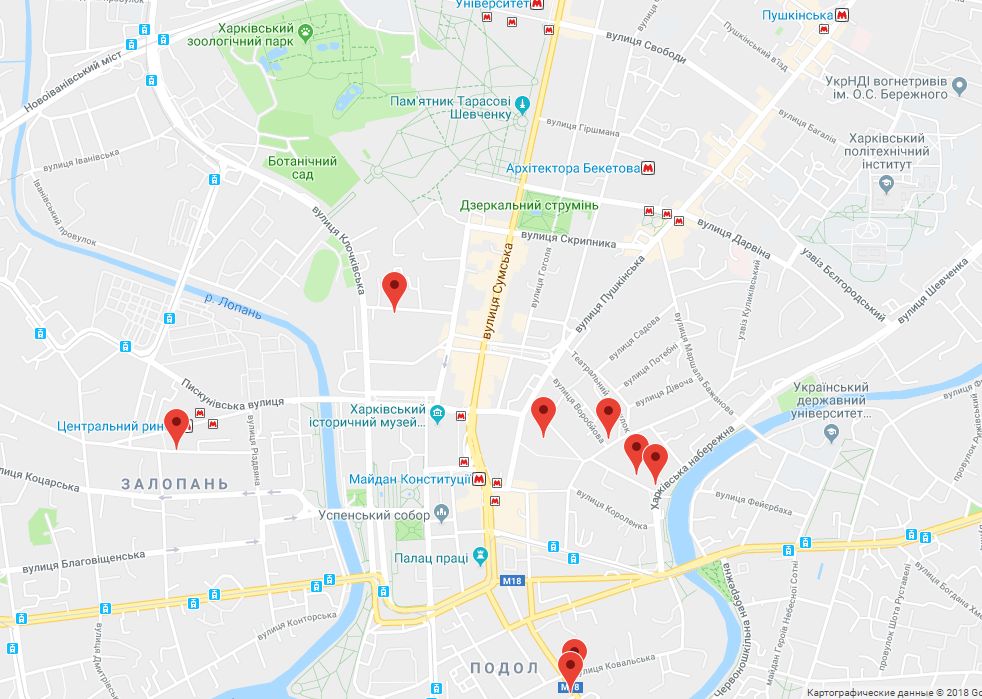 Что касается Харькова, то на карте отмечены 8 синагог, лишь одна из которых является действующей - крупнейшая в Европе Хоральная синагога, расположенная в начале улицы Пушкинской.