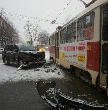 Сегодня в Харькове на площади Защитников Украины 7/8 случилась авария с участием автомобиля Lexus и трамвая 395.
