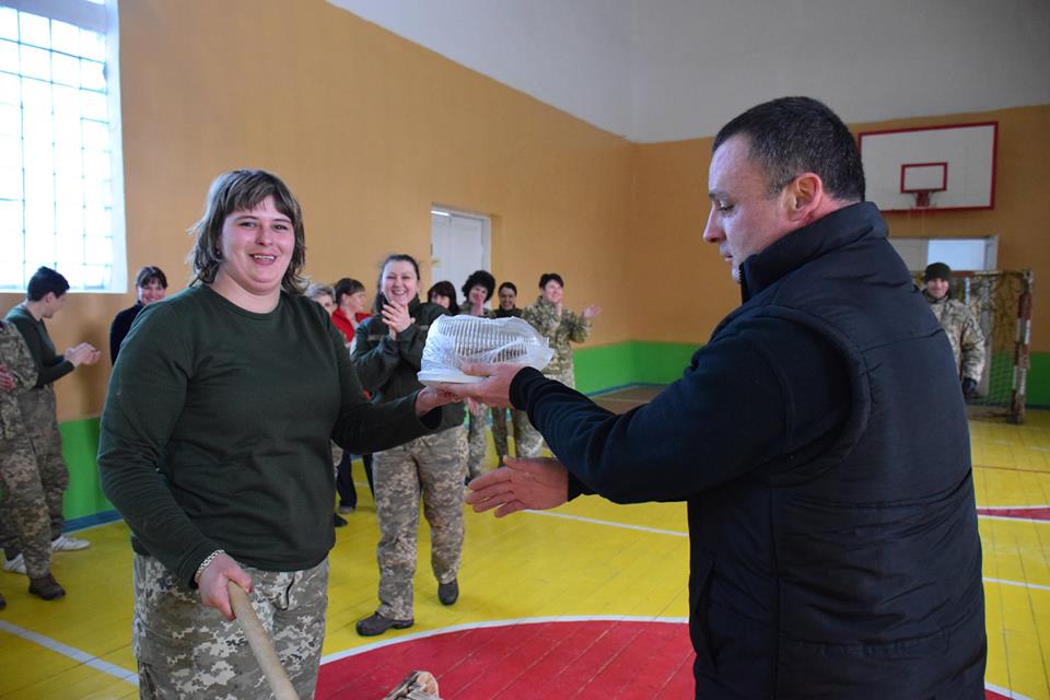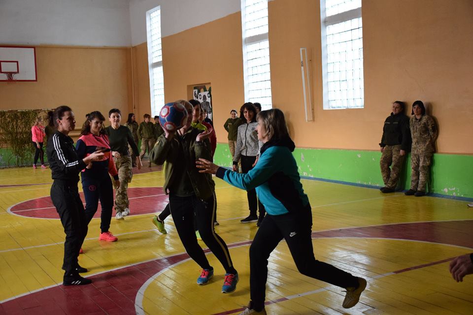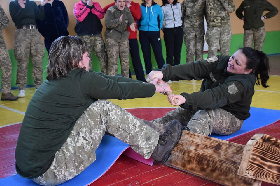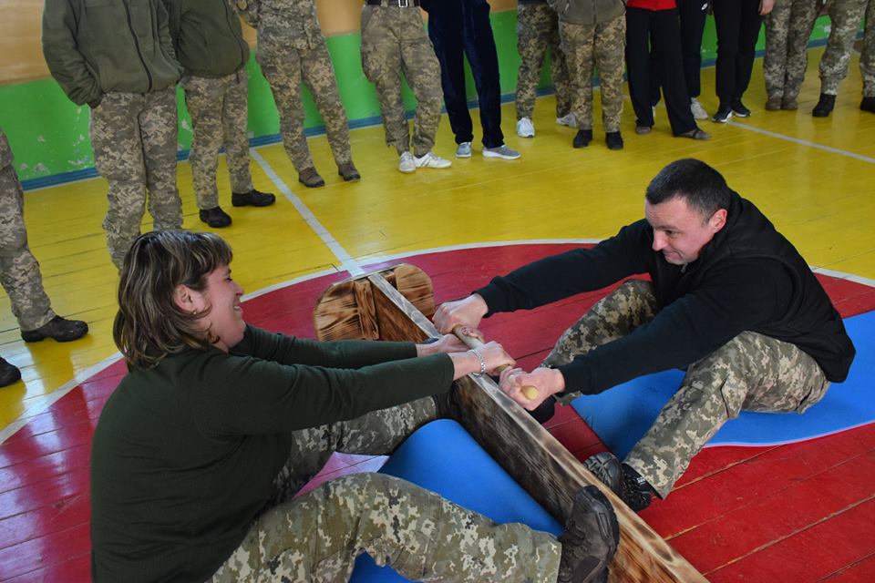 Жінки – військовослужбовці охоче йдуть в спортивний зал, де фізкультура, виконання різних вправ для них - це задоволення і хоббі. Окрім розминки, гри з м’ячем, сьогодні ще й змагалися з Мас - рестлінгу. У боротьбі потрібно було вирвати палицю з рук суперника, або перетягнути його на свій бік, при цьому ноги кожного мали впиратися у дошку. Поєдинок тривав у трьох раундах до перемоги одного із учасників. Старший солдат Катерина Міганова довела свою перевагу у змаганнях, за що отримала заохочувальний приз - Празький торт від судді міжнародної категорії з гирьового спорту - начальника фізичної підготовки та спорту військової частини А3215 майора Ігора Войцехівського.
