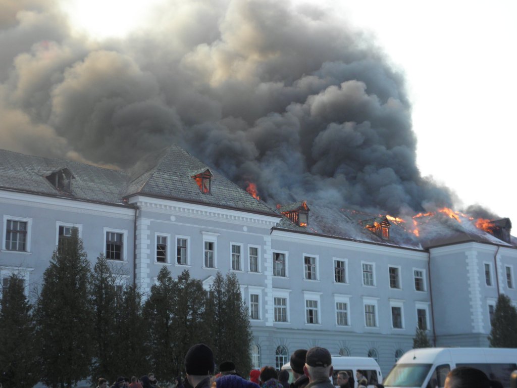У суботу, 24 березня, у м. Хирів, що у Старосамбірському районі Львівщини, близько 14:00 виникла пожежа на вул. Б. Хмельницького, 40 на території колишнього колегіуму єзуїтів із каплицею, де у радянські часи розміщувалася військова частина, а в останні роки діяв готель.