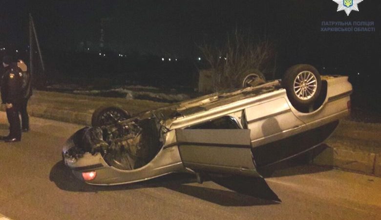 В Харькове на Магистральном въезде опрокинулся BMW. По словам водителя, он уходил от столкновения с пешеходом.