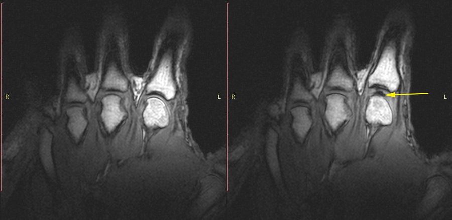 В 2015 году загадка, казалось, была разгадана: используя магнитно-резонансную томографию, канадские ученые из Университета Альберты заглянули внутрь хрустящего сустава и убедились в том, что звук возникает не тогда, когда пузырьки газа лопаются, а в момент их появления. Они связали это с резким перепадом давления в суставе, возникающим вследствие очень быстрого формирования газового пузыря.