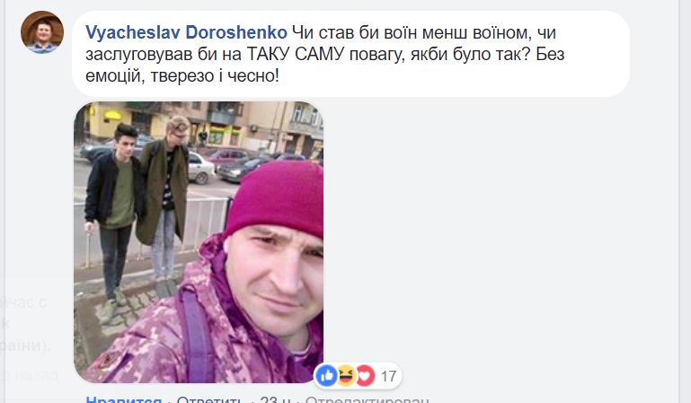 Украинский военнослужащий Петр Батькивский, который сделал скандальный снимок с двумя хипстерами, не хотел никого обидеть.