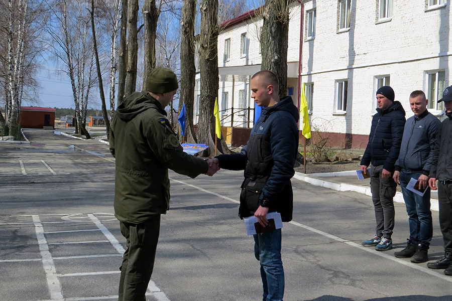 Заступник командира частини по роботі з особовим складом підполковник Петро Крицький на останньому шикуванні вручив грамоти найкращим гвардійцям, подякував їм за добру службу та побажав успіхів у цивільному житті. «Ми будемо раді бачити Вас в рядах Нацгвардії, двері нашої військової частини завжди для вас відкриті», – зауважив Петро Миколайович.