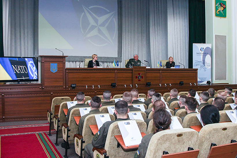 «Ми регулярно проводимо брифінги з керівництвом Академії для обговорення питання щодо впровадження нових дисципліни з розбудови доброчесності, прозорості та зниження корупційних ризиків до навчальної програми Академії, повною мірою використовуємо навчальну програму НАТО на основі навчального плану, узгодженого Північноатлантичним альянсом», – розповіла керівник програми, Управління політичними справами та політикою безпеки штаб-квартири НАТО пані Бенедикт Борель.