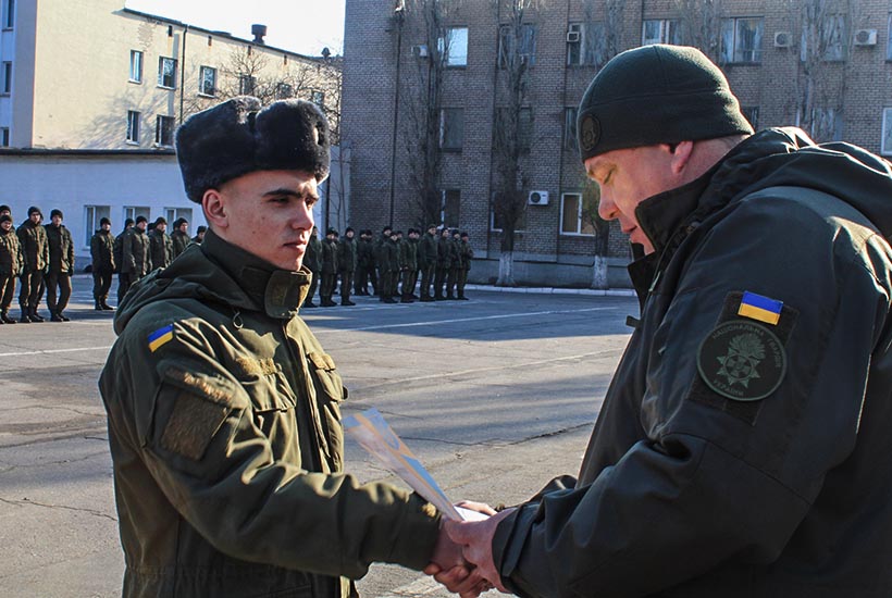 На початку урочистостей гвардійцям, що звільняються висловив слова вдячності командир військової частини полковник Олександр Хоменко: «Дякую Вам за те, що ви чесно і сумлінно виконували свій чоловічий обов’язок перед українським народом. За період служби кожен з вас здобув корисні навички та вміння, які неодмінно знадобляться вам у подальшому житті». Далі командир частини заохотив гвардійців черговими званнями та почесними грамотами.
