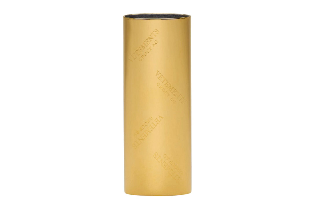 Чехлы, покрытые паттерном из монограмм с логотипом Vetements, представлены в золотом и серебряном цветах. Они будут доступны по цене 347 долларов. По словам дизайнеров марки, это простой, но шикарный аксессуар.