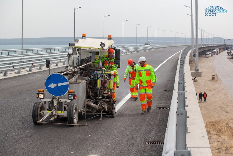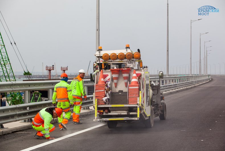 "У Крымского моста два направления движения – по две полосы каждое. На каждом направлении наносится по три линии разметки: две краевых и осевая, разделяющая транспортные потоки попутного направления. Соответственно, нам предстоит нанести линии разметки общей протяженностью около 117 км", – похвастался Матящук.