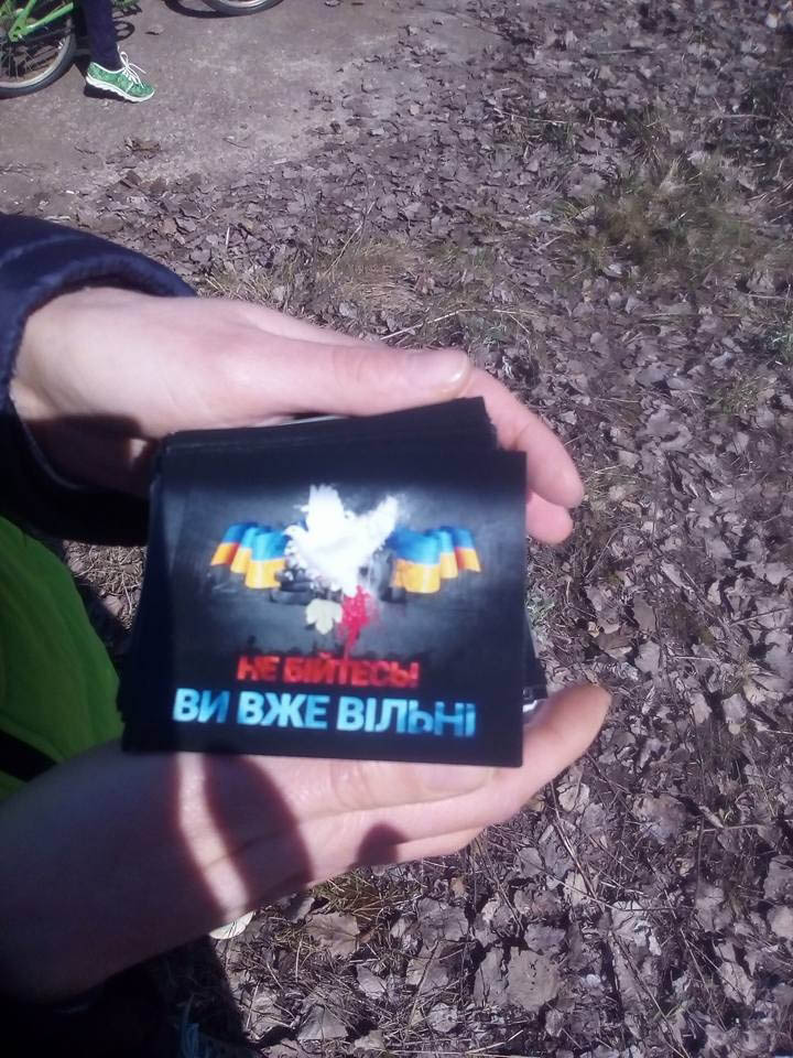 Также активисты отправили в направлении оккупированных территорий наборы патриотических листовок, в которых высмеиваются главари боевиков.