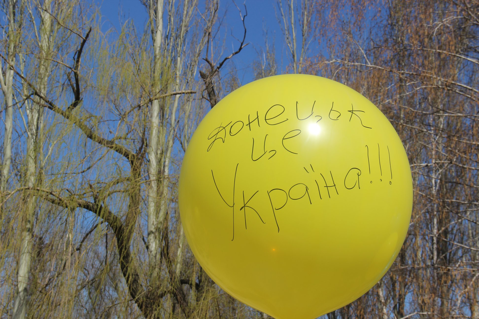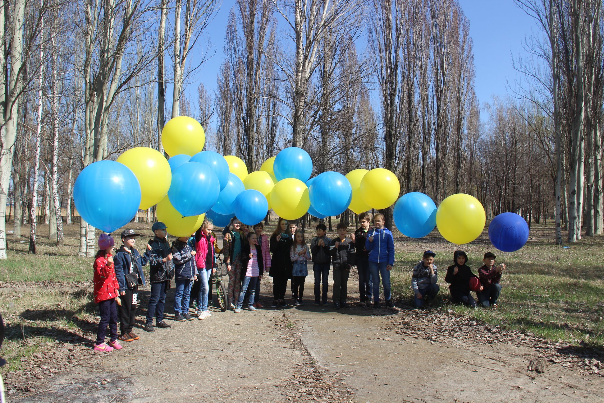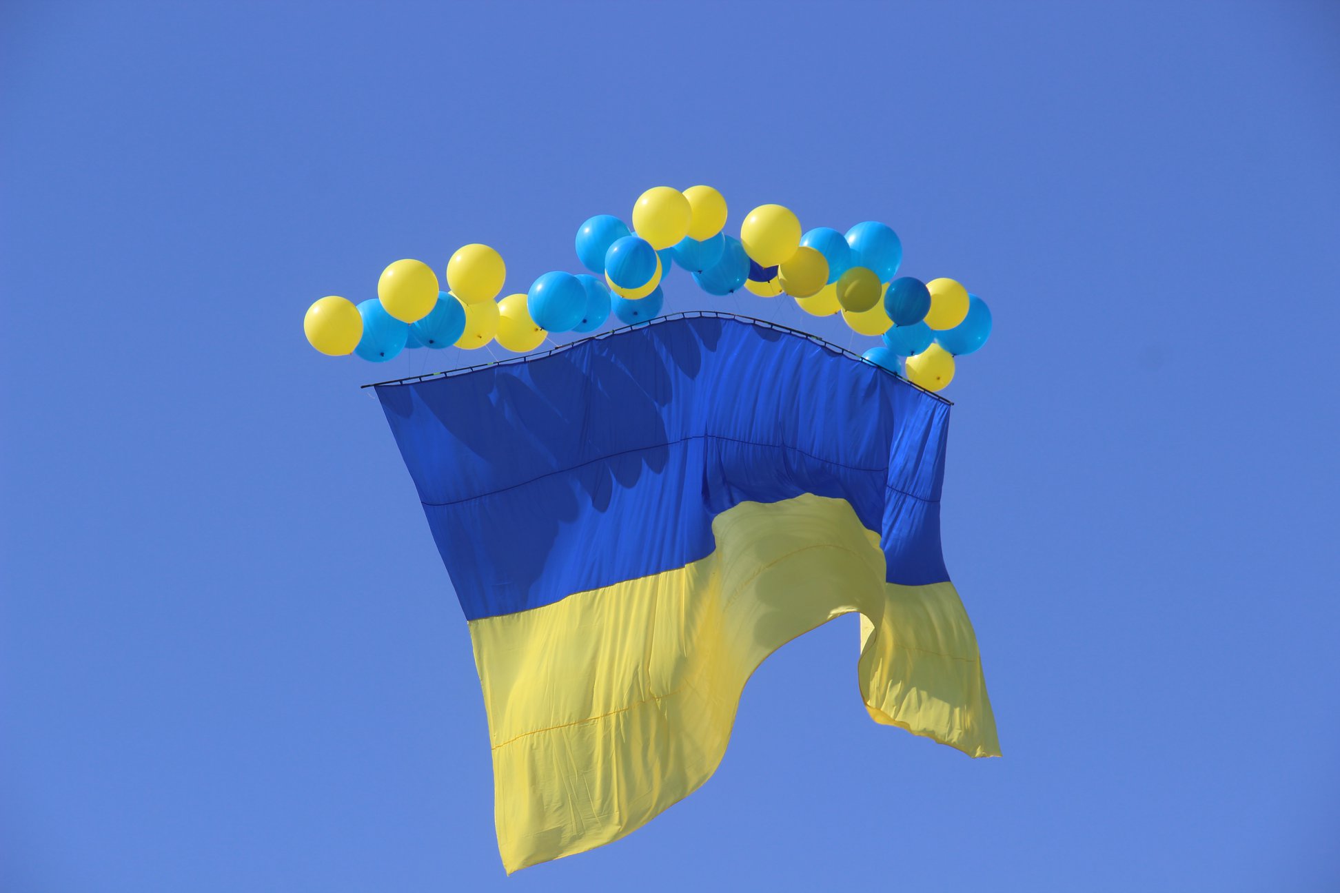 Флаги были закреплены на желтых и голубых воздушных шарах, пишет Вчасно.