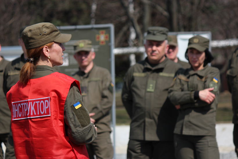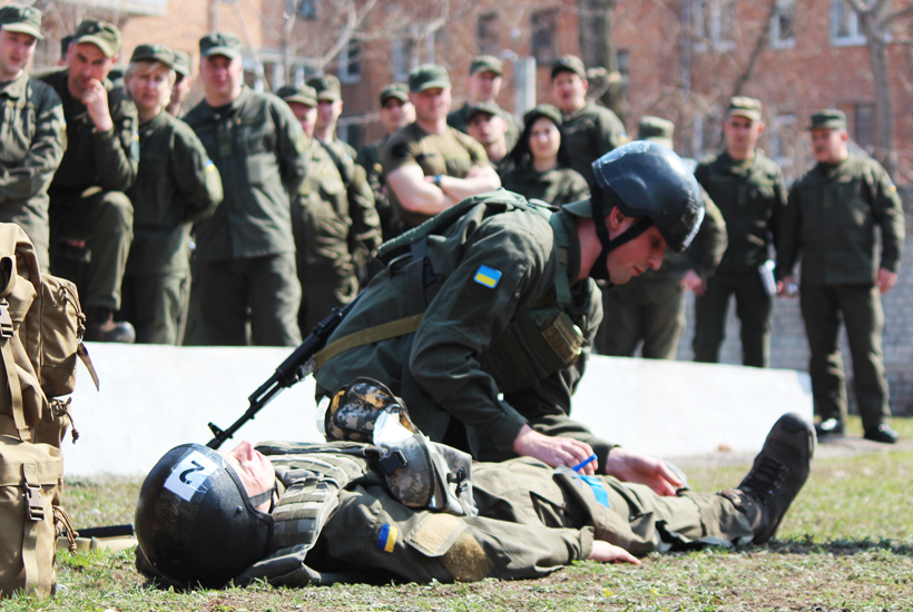 Присутнім продемонстровали надання допомоги «пораненим» в бойовій обстановці за військово-медичним протоколом TCCC (Tactical combat casualty care): накладання турнікетів на поранені кінцівки з масивною кровотечою та медична допомога у проблемних ділянках з тяжкими пораненнями.