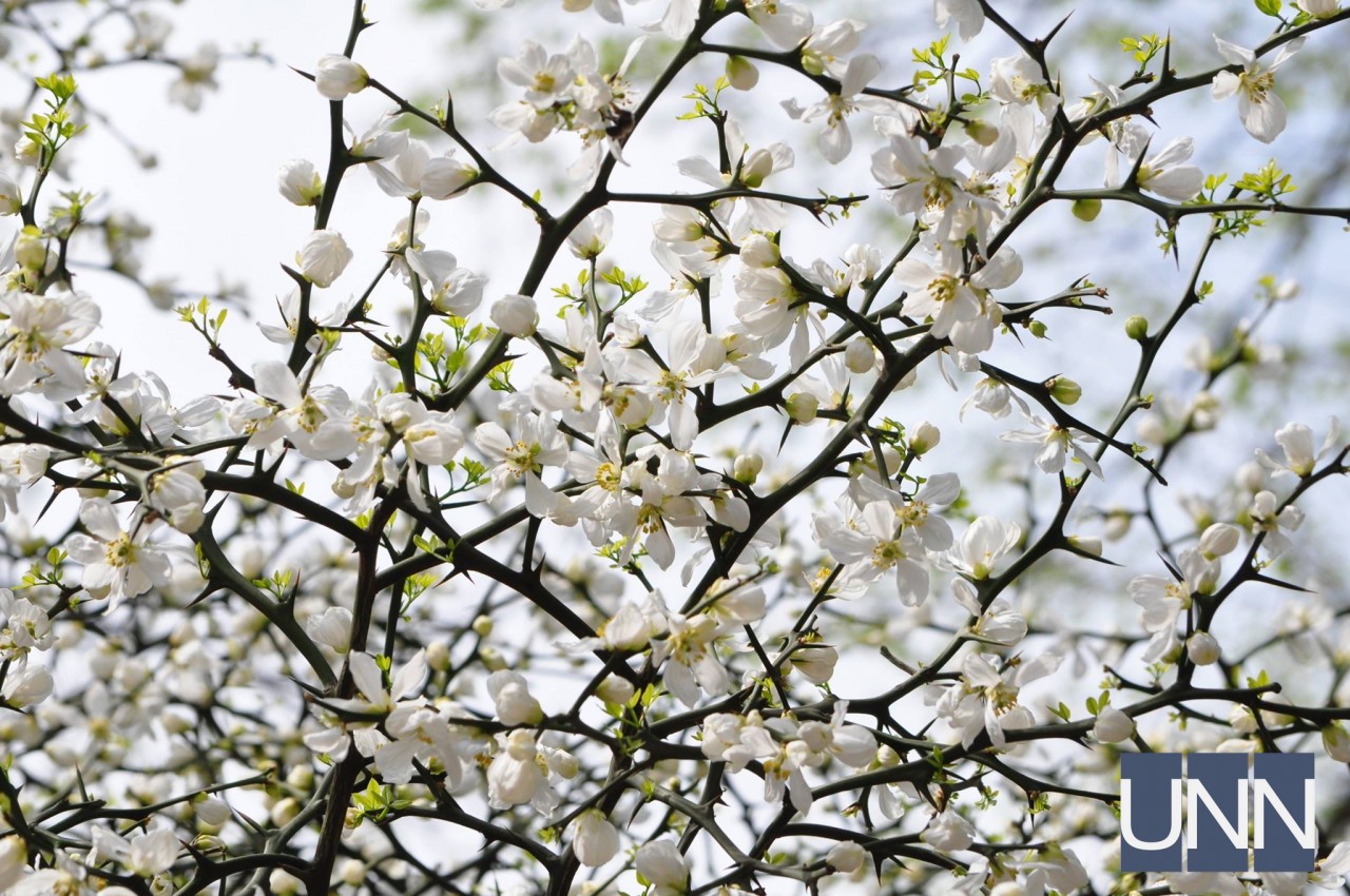 К пышным деревьев цветущей магнолии добавились белые цветы дикого лимона. Крупные иглы древовидных кустарников покрыли белые соцветия, из которых осенью появятся желтые лимончики.