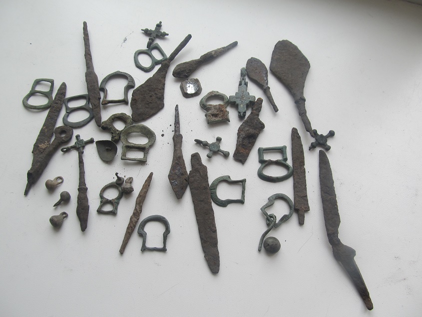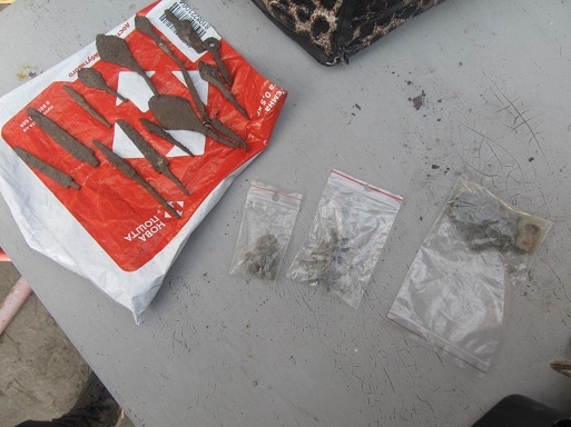 В результаті огляду, в рюкзаку водія, 51-річного громадянина України, виявлено значну кількість предметів старовини. Серед виявленого - 14 наконечників до стріл та списів, 12 пряжок, 5 хрестиків, 6 ґудзиків та один елемент персня. Всі предмети орієнтовно датуються ХІV - ХV століттями.