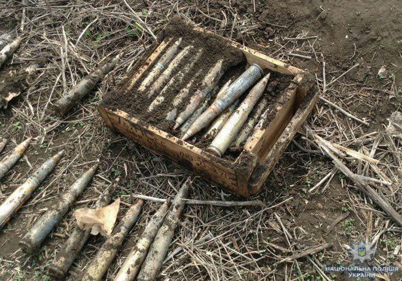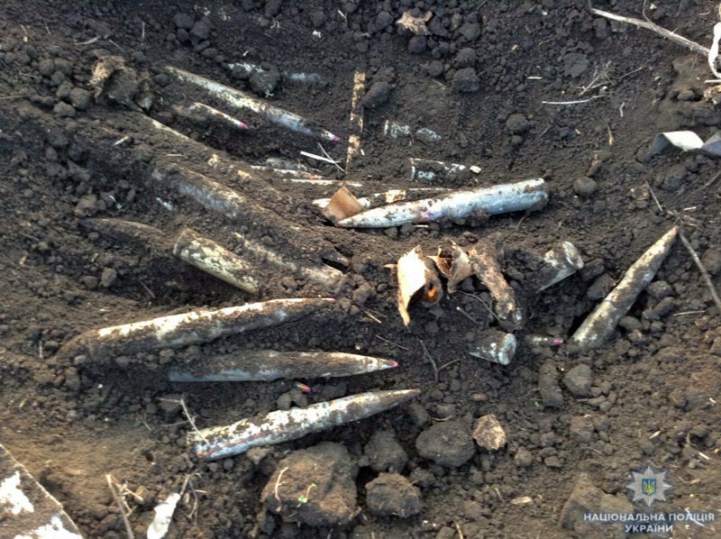 У результаті 8-годинної роботи поліцейські разом із вибухотехніками викопали із землі цілий бойовий арсенал: 300 осколково-фугасних снарядів калібром 30 мм.