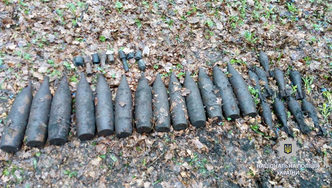 На місце події виїжджала слідчо-оперативна група, група реагування патрульної поліції, експерти та працівники Державної служби з надзвичайних ситуацій. Інформація підтвердилася. У лісі виявлено 15 ручних гранат, 15 міномонетних мін та 40 снарядів різних видів.