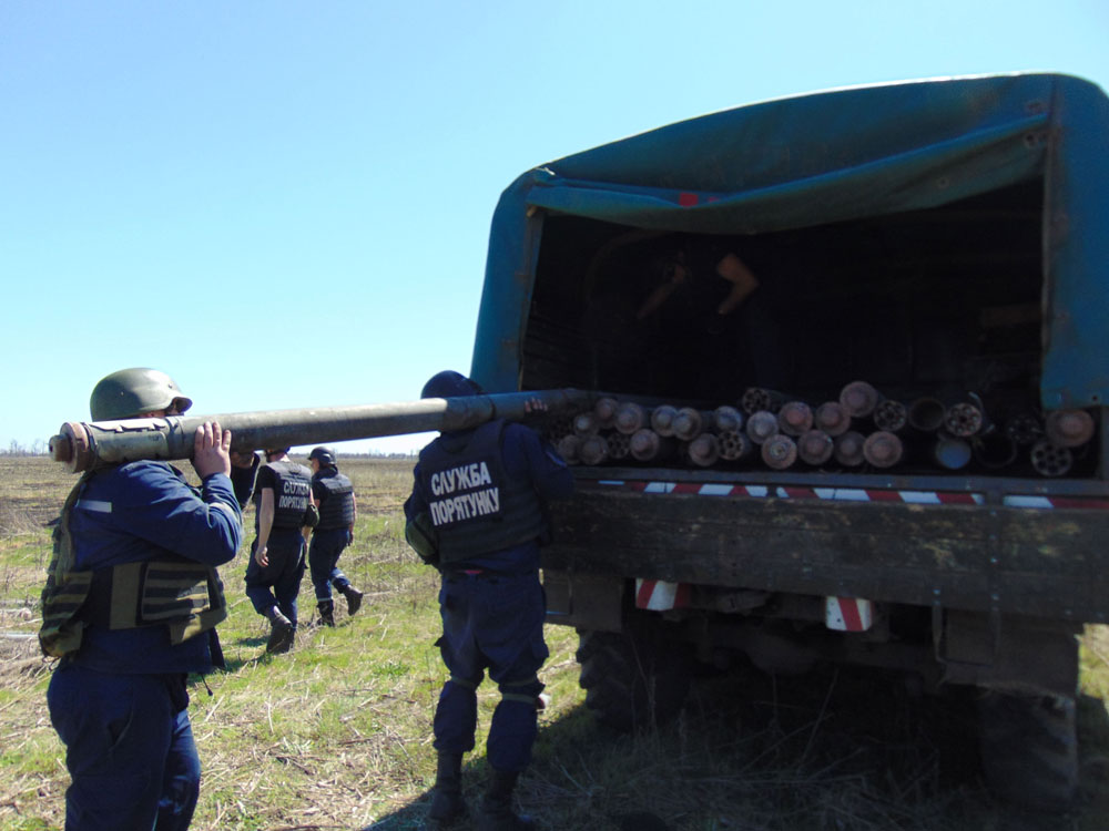 Так, 22 апреля специалисты пиротехнических работ Главного управления ГСЧС Украины в Донецкой области проводили работы вблизи поселка Северное. Населенный пункт находится всего в нескольких километрах от зоны проведения боевых действий. Один из местных фермеров обнаружил боеприпасы во время работы в поле. Об опасной находке мужчина немедленно сообщил в Службу спасения.