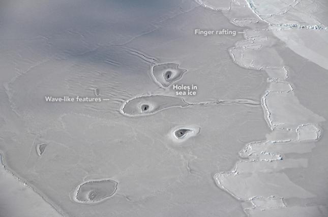 Ученые миссии NASA Operation IceBridge пролетали над морем Бофорта и обнаружили во льду необычные отверстия, природа которых остается загадкой для исследователей. Ученые миссии совершали пролет над Арктикой для того, чтобы сравнить количество льда в 2013 году и сейчас. Но 14 апреля они обнаружили необычные лунки, которые стали для них полной неожиданностью, сообщает NASA.
