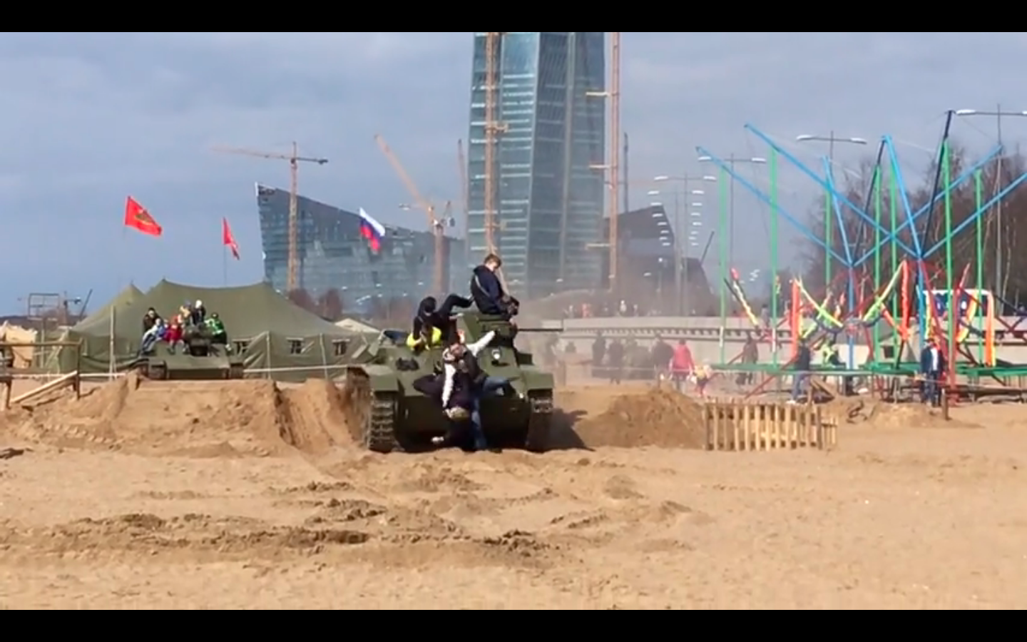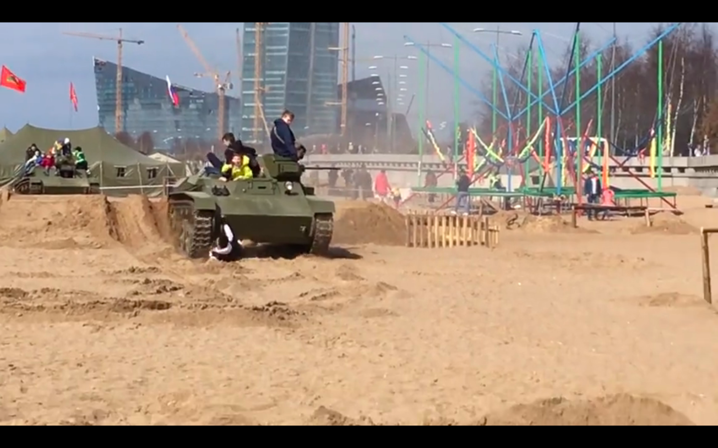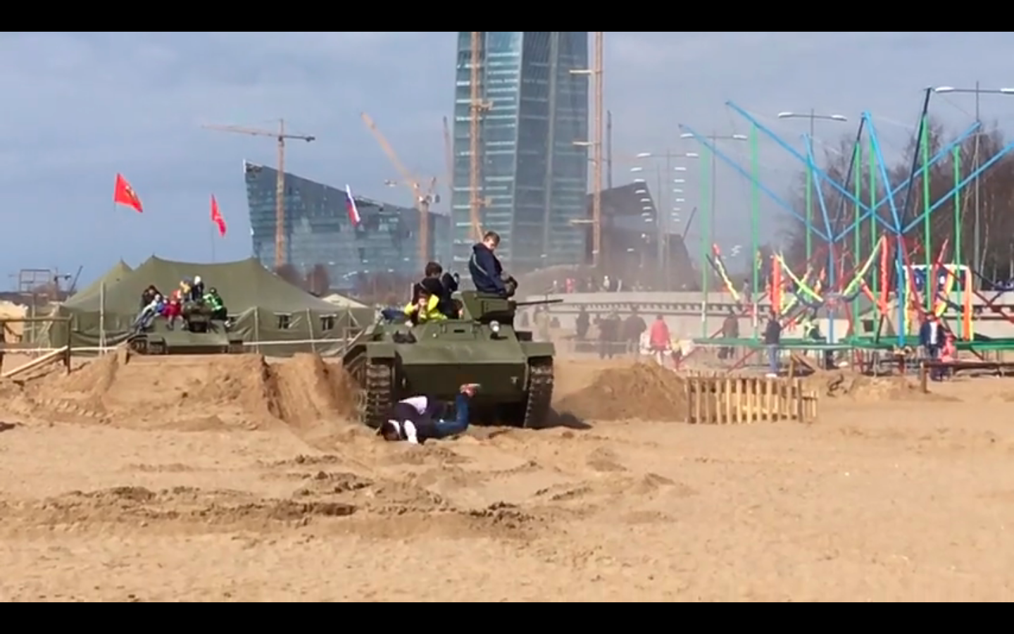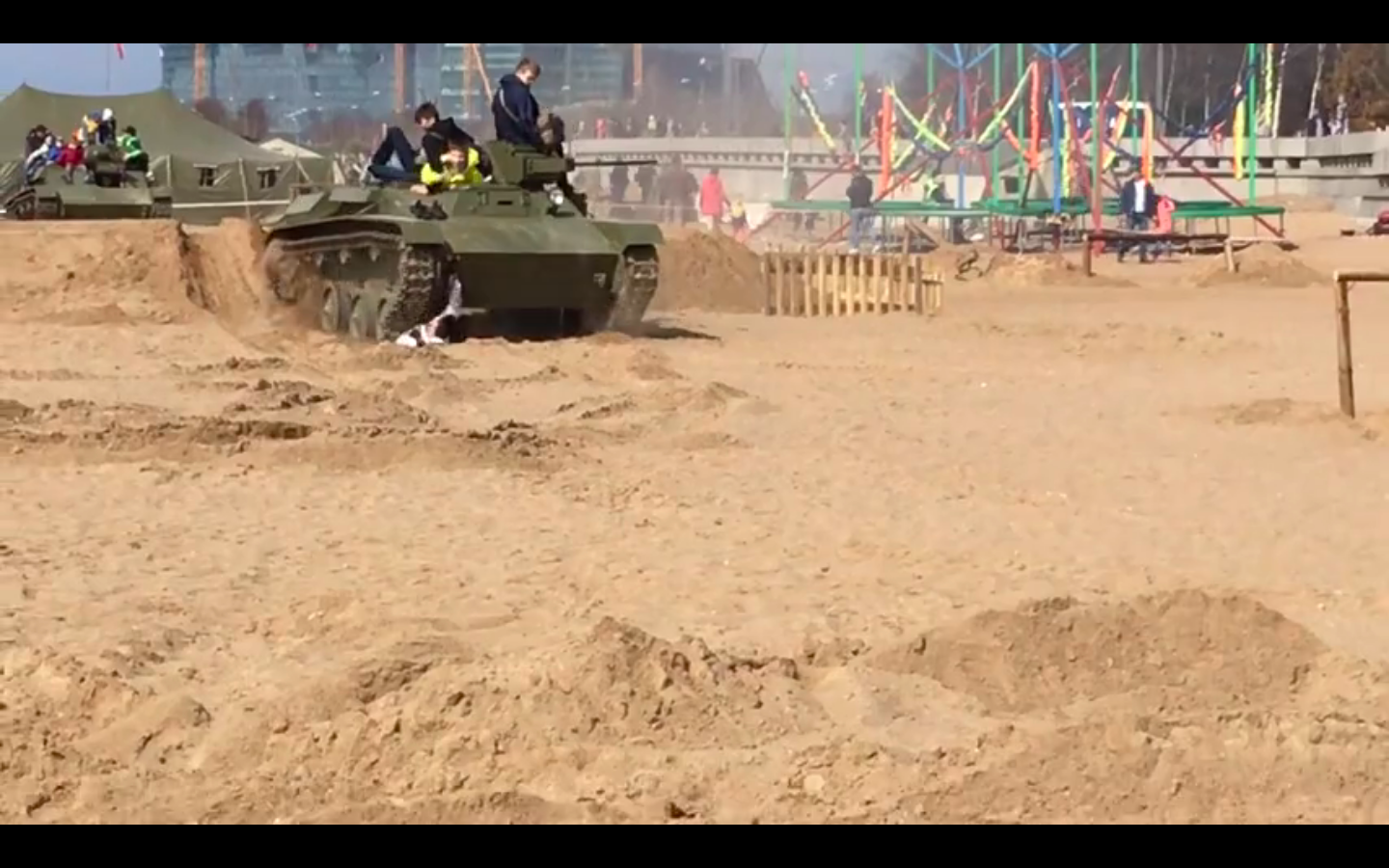 Не один, а два человека попали под гусеницы тяжелой бронетехники, на которой катались гости фестиваля в Приморском районе Петербурга. В распоряжении «Фонтанки» есть видео того, как многотонный танк впечатал в песок молодого мужчину.
