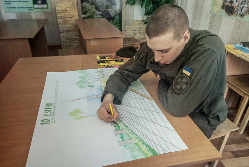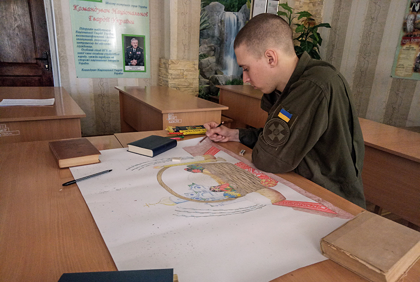 Сьогодні юнак, несучи тягар нелегкої служби нацгвардійця, знаходить час для творчості, малюючи різні картини, плакати, аплікації, привносячи яскравість у будні військової служби.