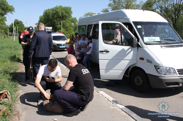 Прибулі наряди патрульної поліції оточили автобус. В салоні залишалися водій та чоловік, який весь час щось голосно викрикував. Оцінивши ситуацію, поліцейські миттєво витягли "терориста" з салону. Вибухотехніки оглянули вміст рюкзака зловмисника, але ні вибухівки, ні вибухових речовин в ньому не виявили.