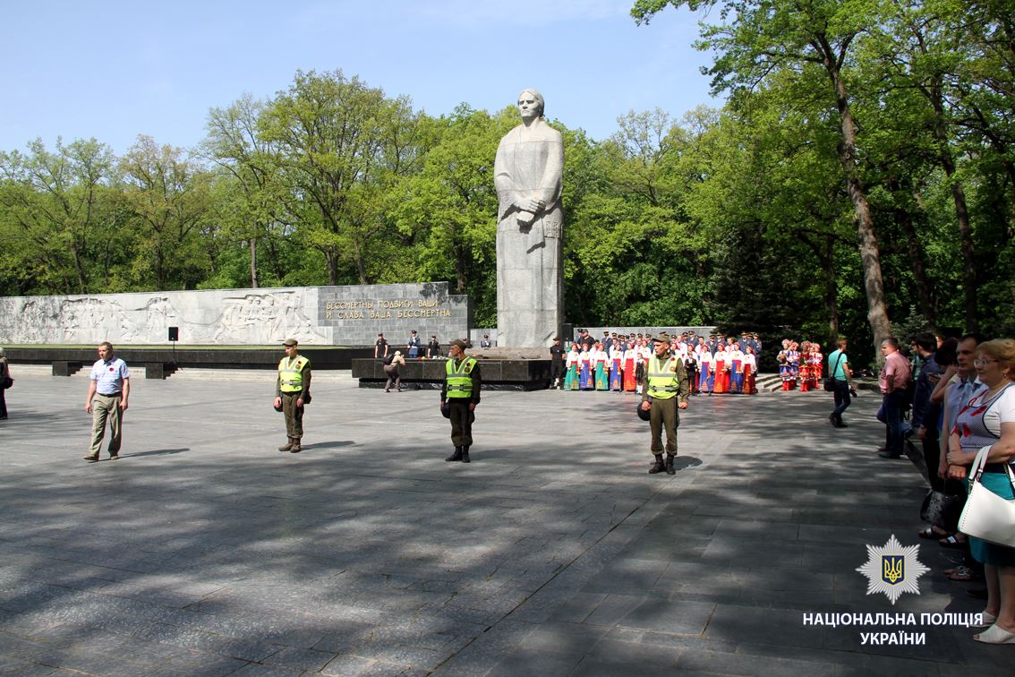 На Мемориале «Славы» в Лесопарке порядок обеспечивали 180 сотрудников Нацполиции, 50 сотрудников Управления патрульной полиции и 100 военнослужащих Нацгвардии. На мероприятии присутствовало около 7000 граждан.