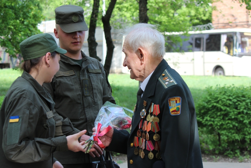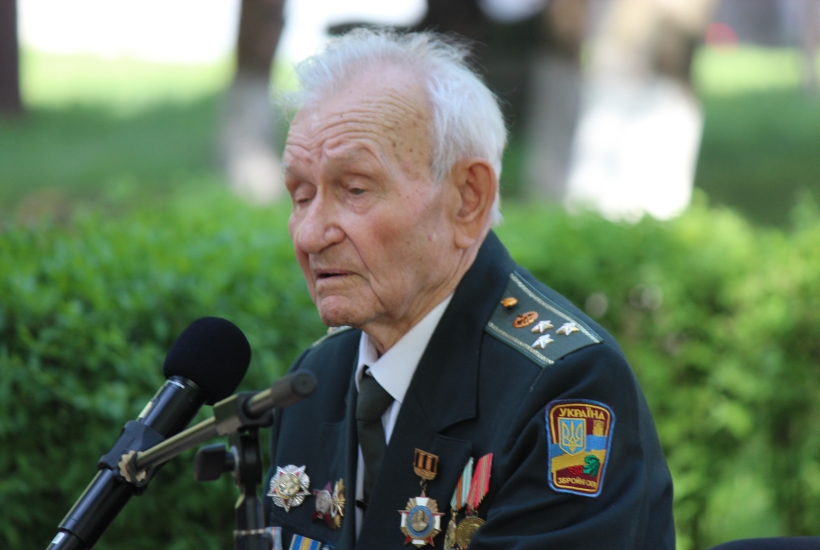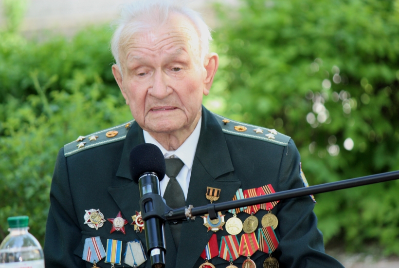 «На фронт зміг потрапити лише після визволення рідного міста, в 19 років, став кулеметником. Потім була Курська битва, визволяв Білорусь і Київ. Я дійшов до Берліна. Там під час жорстоких боїв на лівому фланзі ударної групи, що штурмувала Рейхстаг, мене і поранили»,— розповідає гвардійцям ветеран.