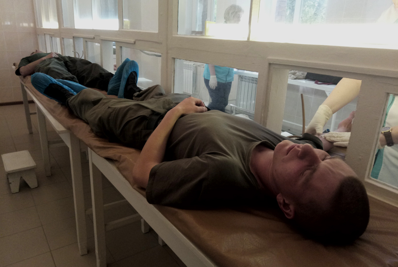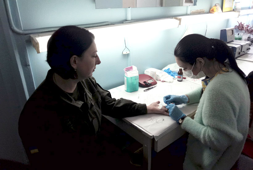 Гвардійці відгукнулися на прохання керівництва відділення трансфузіології клінічної лікарні Слов’янська. Після реєстрації у донорів перевірили артеріальний тиск та вміст гемоглобіну у крові, їх оглянув терапевт.