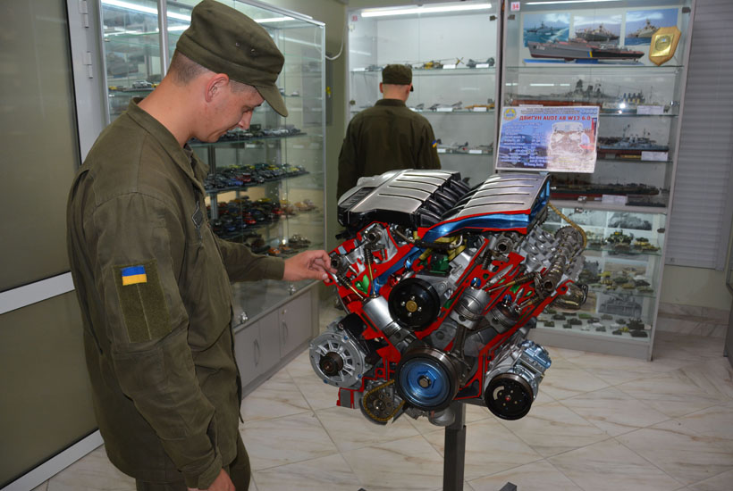 Гвардійці з захопленням оглядали велику кількість різноманітних моделей, серед яких представлені навіть єдині моделі військової техніки ручної роботи.