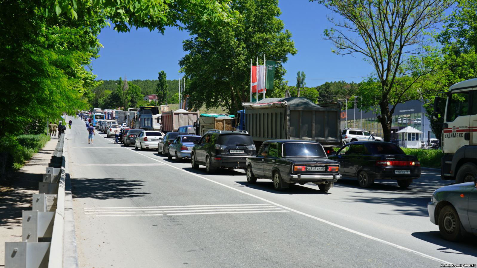 Как сообщает издание, попавший в аварию бронетранспортер принадлежит одному из воинских подразделений береговой обороны Черноморского флота России из Перевального. Полиция перекрыла дорогу в обеих направлениях не только для транспорта, но и прохожих. В результате на трассе образовалась длинная пробка.