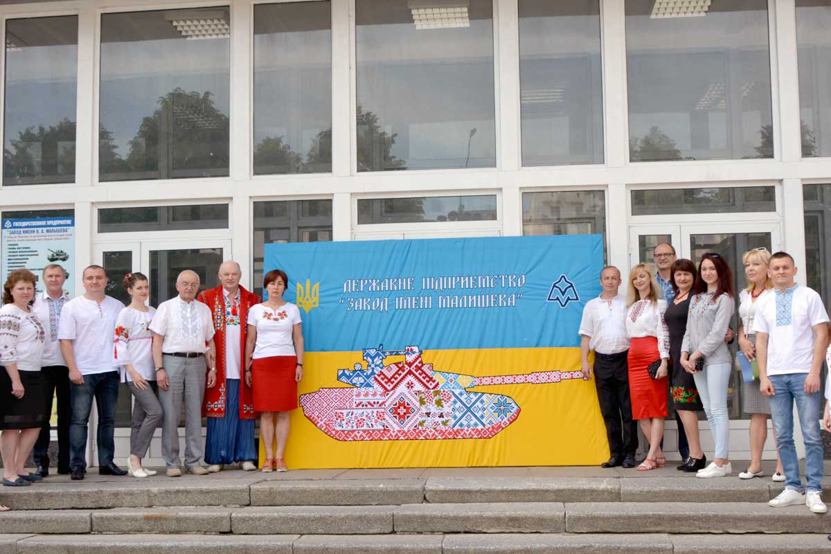На ГП "Завод им.Малышева" (Харьков) отметили Всемирный день вышиванки, создав желто-голубое полотно с танком "Оплот", расшитым национальными узорами. Об этом сообщили на предприятии. Полотно символизирует флаг Украины.